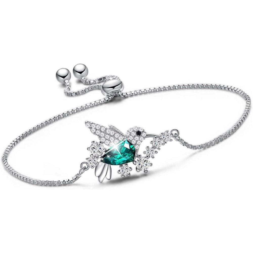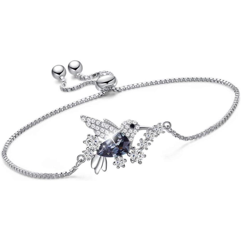 CDE Bracelets for Women, Silver Bracelet Hummingbird Crystal Bangles Charm Jewelry Enriched with Swarovski Crystals