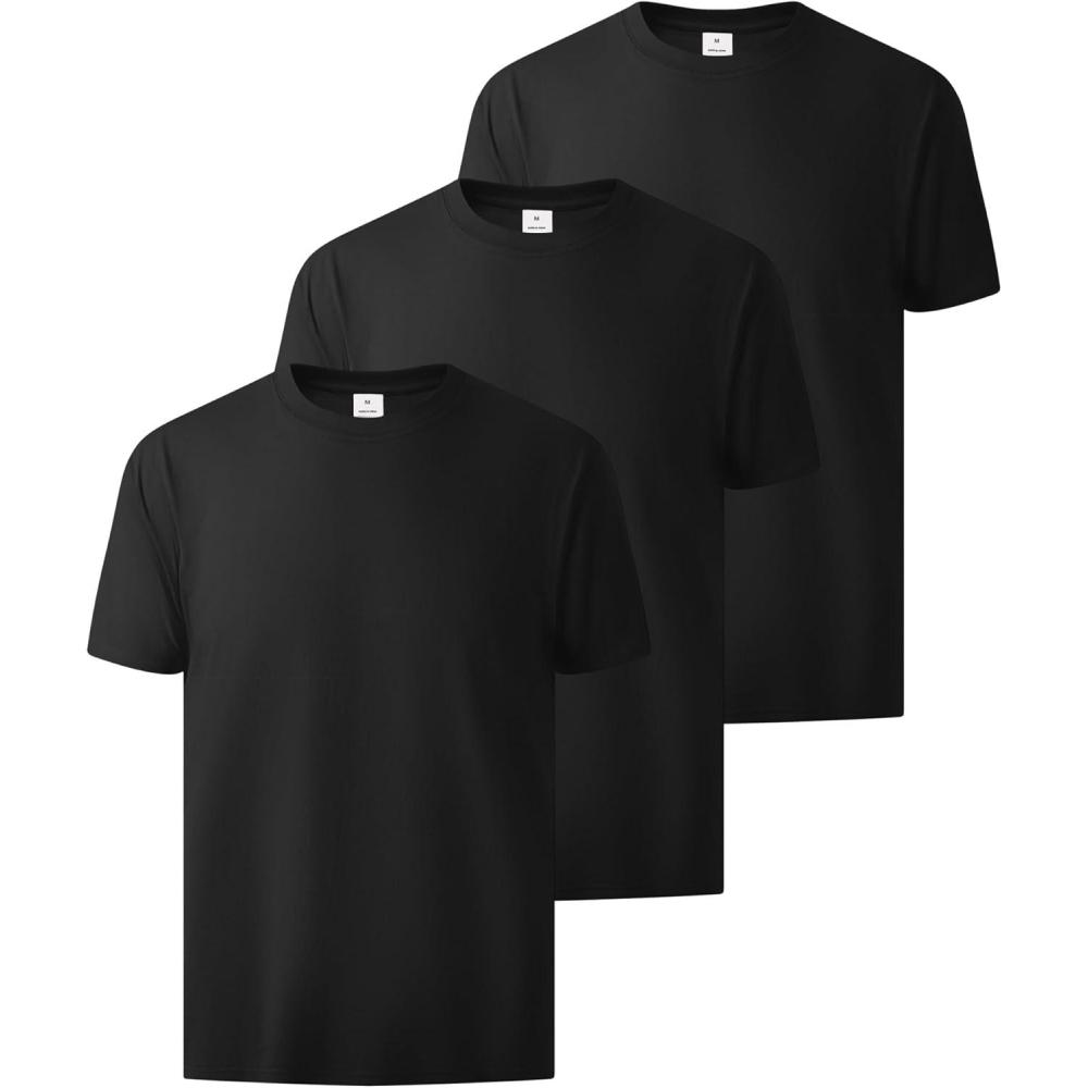 ZITY 3 Pack Men’s T-Shirts Cotton Crew Neck Basic Tee Short Sleeve Soft Casual Shirts Summer Tops(Black)